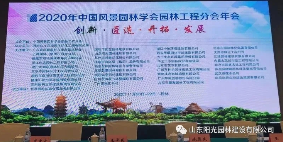 11月(yuè)20日(rì)—22日(rì),α™<2020年(nián)度中國(guó)風(fēng)景園林(lín)學會(huì)園林(lín)☆ 工(gōng)程分(fēn)會(huì)年(nián)會(huì)在廣西(xī)桂林(lín)隆重舉行(xíng)。安徽徽風皖韻古建園林∞™×有限公司的(de)東(dōng)營區(qū)綠(lǜ)