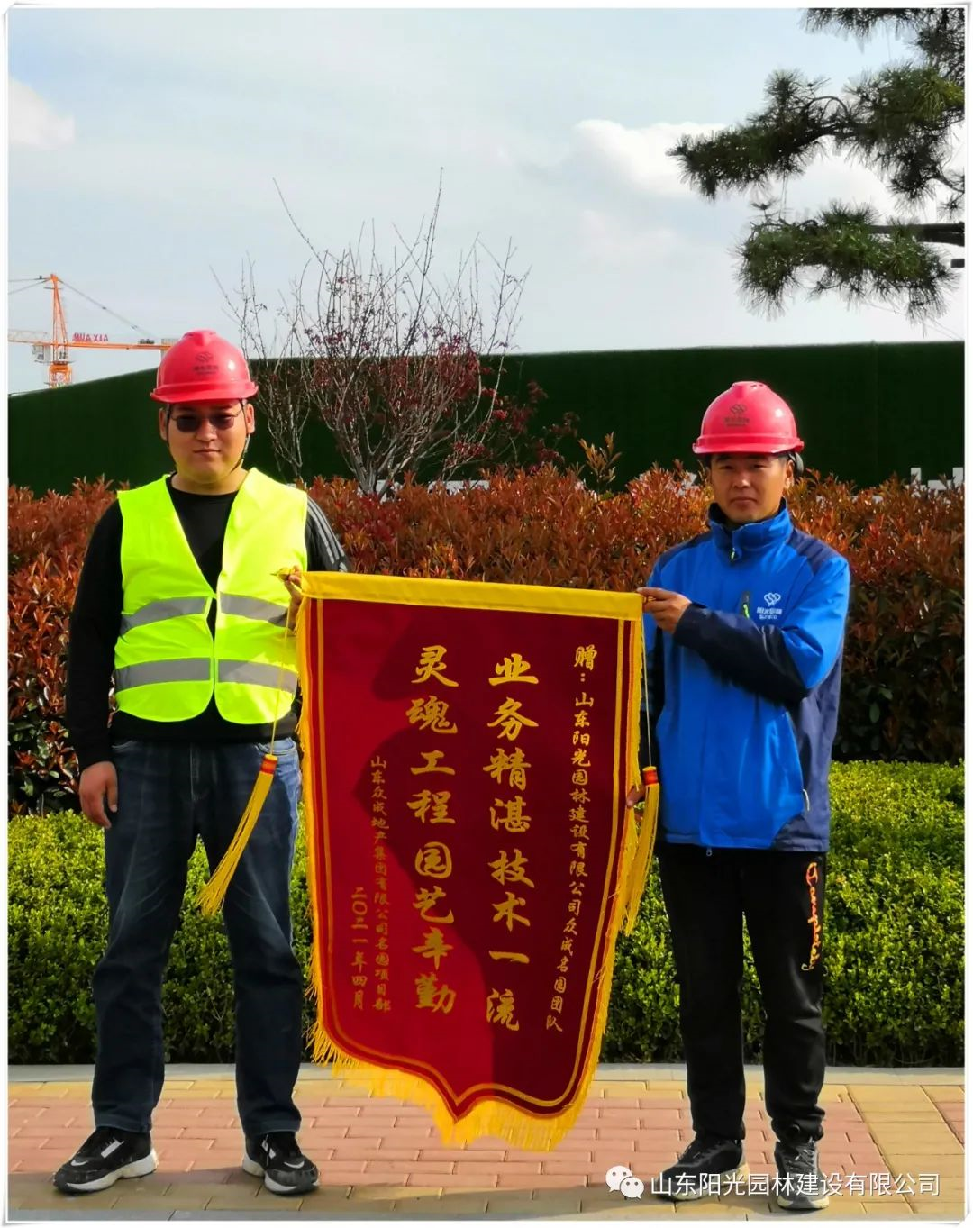 匠(jiàng)心工(gōng)程,享譽四方。2δ≤♦α021年(nián)4月(yuè)14日(rì),山(shān)東(dōng) ‍←衆成地(dì)産集團有(yǒu)限公司代表将印有(yǒu)“業(yè)務精湛 技(jì)σ§©術(shù)一(yī)流 靈魂工(gōng)程 園藝辛勤”的(de)錦旗授₽£÷予陽光(guāng)園林(lín)衆成名園項目 ‍φ☆部,并對(duì)項目部在衆成名園項目施工 ₽(gōng)中的(de)突出表現(xiàn)表示感謝(xiè)。錦πα↑φ旗上(shàng)的(de)贈語詞短(duǎn)情真,這(zhè)β​∏是(shì)對(duì)陽光(guāng)園林(lín)匠(jiàng)心工Ω↕(gōng)程的(de)褒獎,也(yě)是(shì)陽光(guāng)人(rén)用>"β(yòng)實實在在的(de)付出赢得(de)的(de)‍ 榮譽。