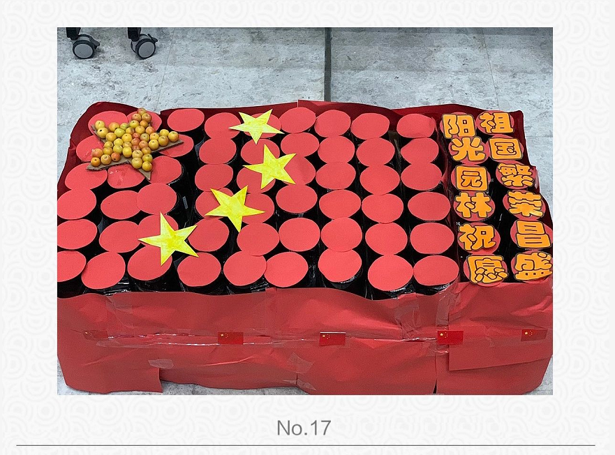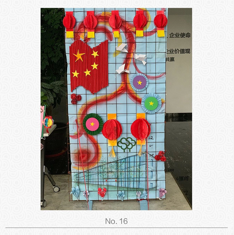9月(yuè)30日(rì),安徽徽風皖韻古建園林有限公司,以“慶祝中華人(rén)民(mí≈ n)共和(hé)國(guó)成立70周年(n∞←ián)”為(wèi)主題,進行(xíng)了(le)“就(jiù)地(d↕↓←ì)取材、廢物(wù)利用(yòng)”的(de)手工(gōng Ω¥)創作(zuò)活動,緻敬偉大(dà)祖國(guó),祝福祖國λ↕β(guó)繁榮昌盛,再創輝煌!